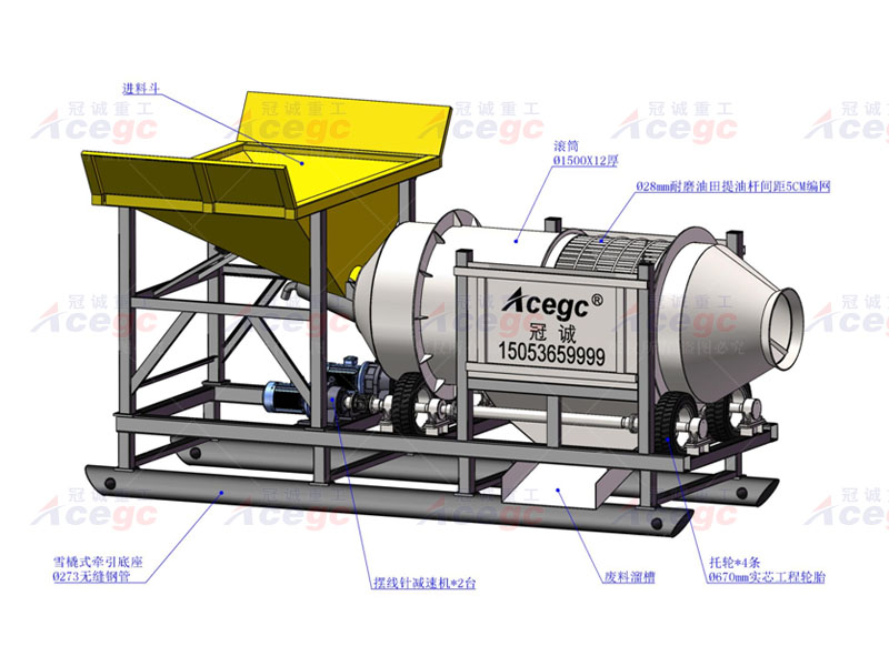 80-120噸/小時(shí)移動(dòng)式1544滾筒洗砂洗礦機(jī)效果圖: